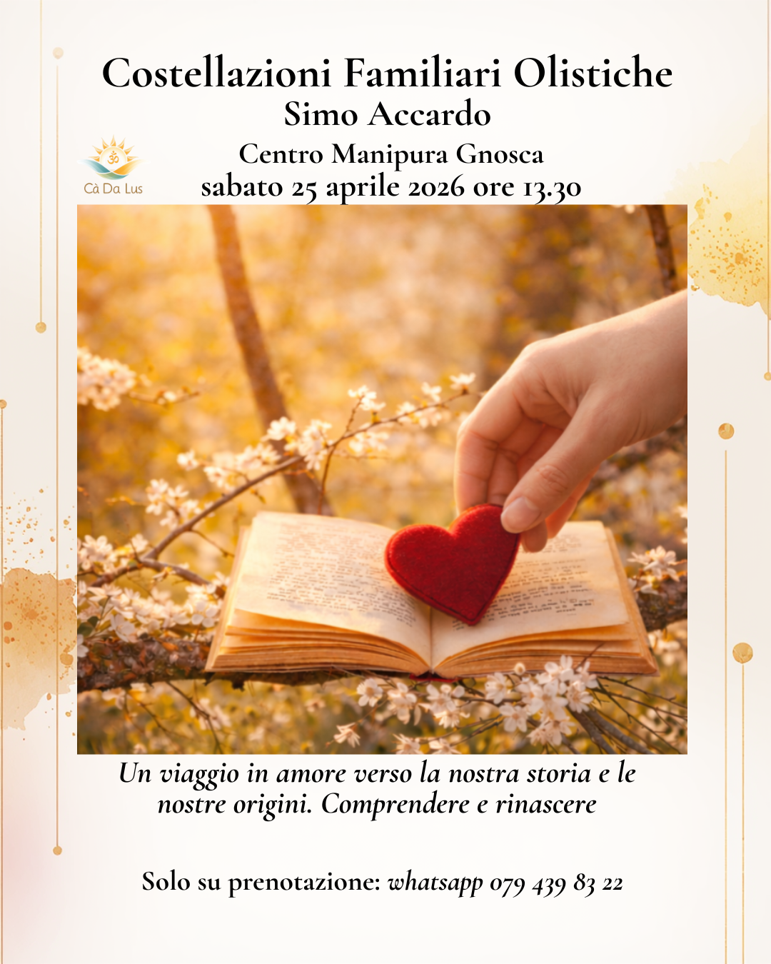 Un viaggio in Amore verso la nostra storia e le nostre origini. Comprendere e rinascere. Centro Manipura, Gnosca sabato 25 […]