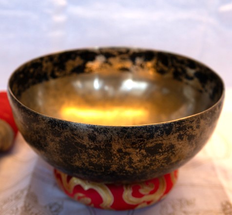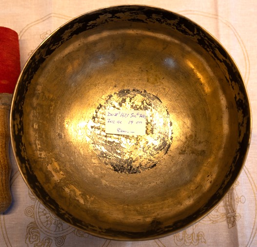 Con i suoi 19 cm di diametro e 702 grammi, si tiene perfettamente nel palmo: abbastanza grande da riempire lo spazio sonoro, abbastanza leggera da essere usata in sessioni prolungate di meditazione o massaggio sonoro diretto sul corpo.