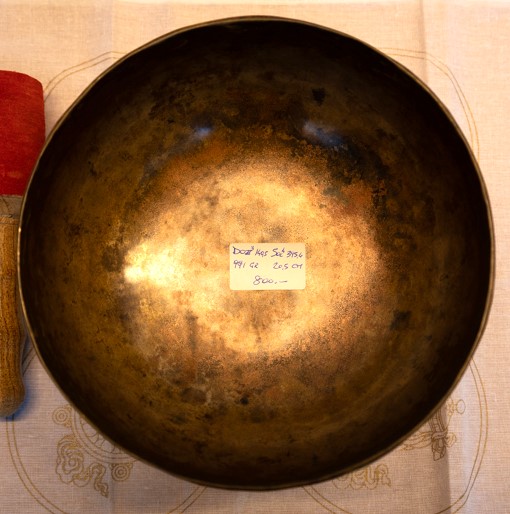 Con i suoi 20,5 cm di diametro e 991 grammi, si tiene perfettamente nel palmo: abbastanza grande da riempire lo spazio sonoro, abbastanza leggera da essere usata in sessioni prolungate di meditazione o massaggio sonoro diretto sul corpo.
