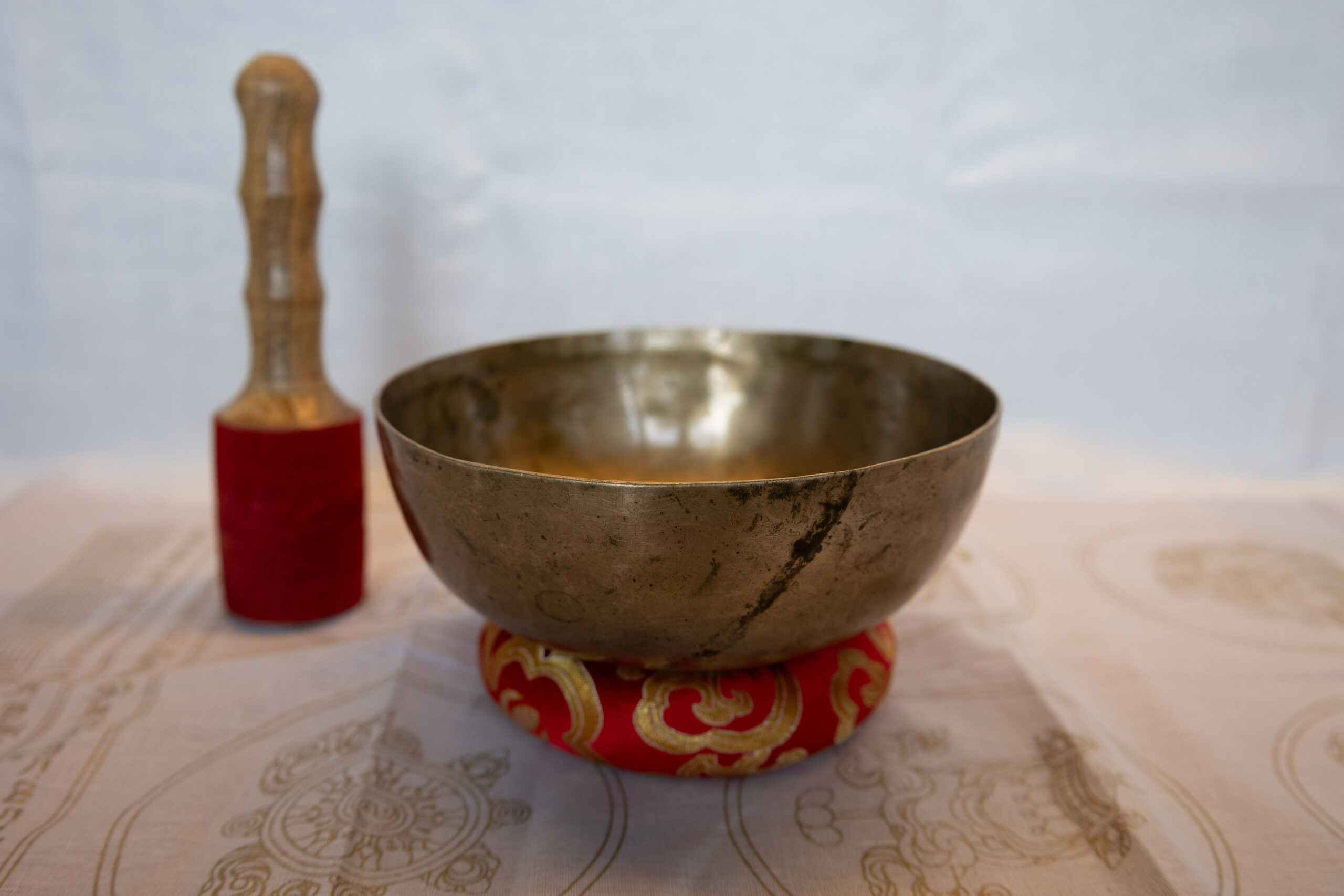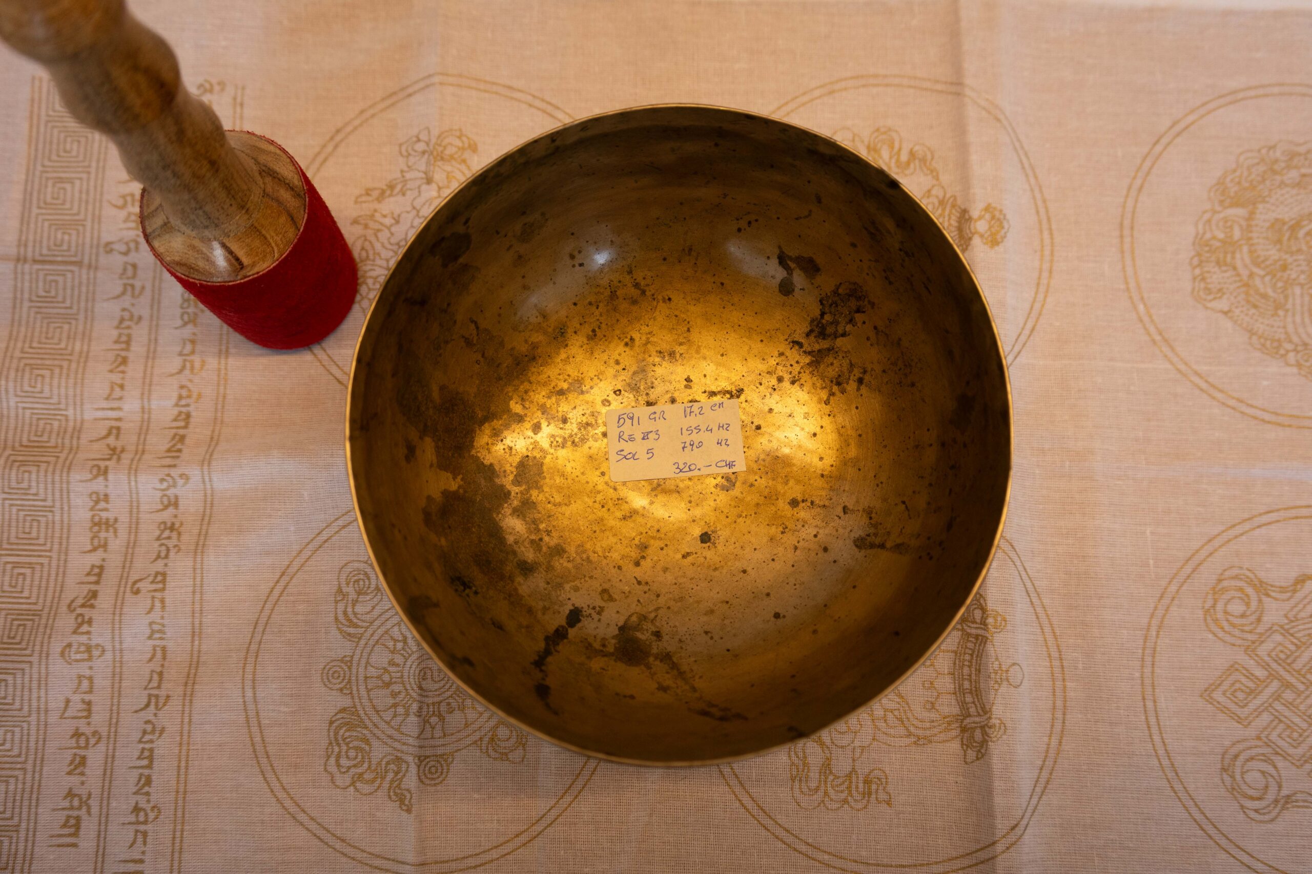 Con i suoi 17,2 cm di diametro e 591 grammi, si tiene perfettamente nel palmo: abbastanza grande da riempire lo spazio sonoro, abbastanza leggera da essere usata in sessioni prolungate di meditazione o massaggio sonoro diretto sul corpo.