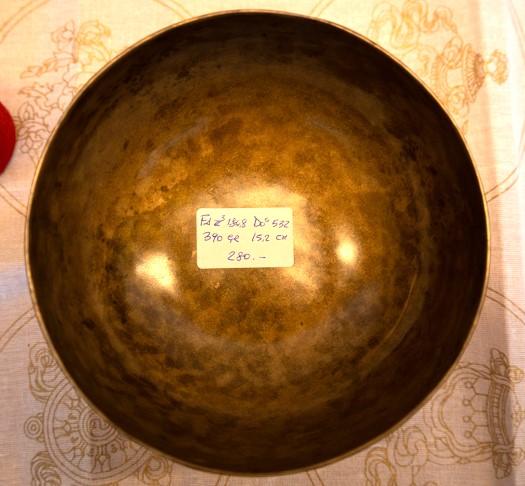 Con i suoi 15,2 cm di diametro e 390 grammi, si tiene perfettamente nel palmo: abbastanza grande da riempire lo spazio sonoro, abbastanza leggera da essere usata in sessioni prolungate di meditazione o massaggio sonoro diretto sul corpo.